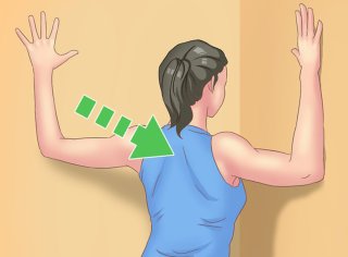 - 문틀 양쪽에 손을 대고 팔을 90도로 구부립니다.