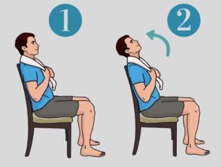 - 머리를 뒤로 밀면서 수건으로 저항을 줍니다.