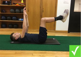 - 복부에 힘을 주며 허리를 바닥에 밀착시킵니다.