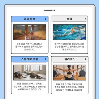 - 통증이 심한 날에는 운동량을 줄이고 휴식 우선
