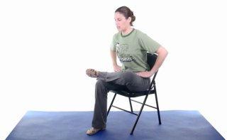 - 의자나 침대 끝에 앉아 한쪽 다리를 앞으로 곧게 펴줍니다.