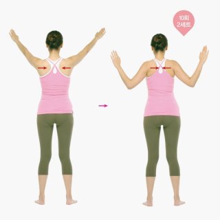 1. 어깨를 천천히 앞쪽으로 10회 돌립니다.